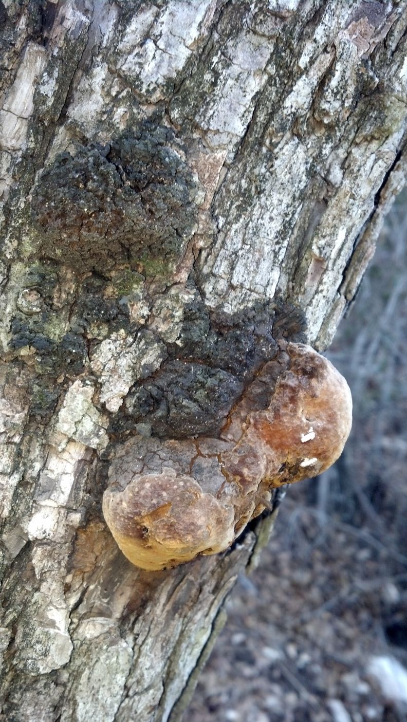 So last weekend we head out to the wilderness park to see if we can still find one alive. As we head up the hill on the trail we notice that everything is pretty dry including the ground and many trees to the point of twig snapping. As we head up higher we find a couple of conks and we excitedly run up to examine them but they are extremely dry and they break off with no effort at all with the sound of dry bark releasing. They are hard as a rock with no signs of life.